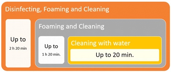 As cleaning time is crucial during peak production, in order to insure a reliable food safety without compromising the production capacity, equipment with best ratio cleaning time vs. cleaning results should be aimed for. Any inefficient cleaning systems will threaten the food safety of all production as fans will keep circulating bacteria contamination over and over through the production batches. The following table can be considered as a reference point of a reasonable ratio time vs. efficiency when comparing cleaning processes in different freezing technologies: